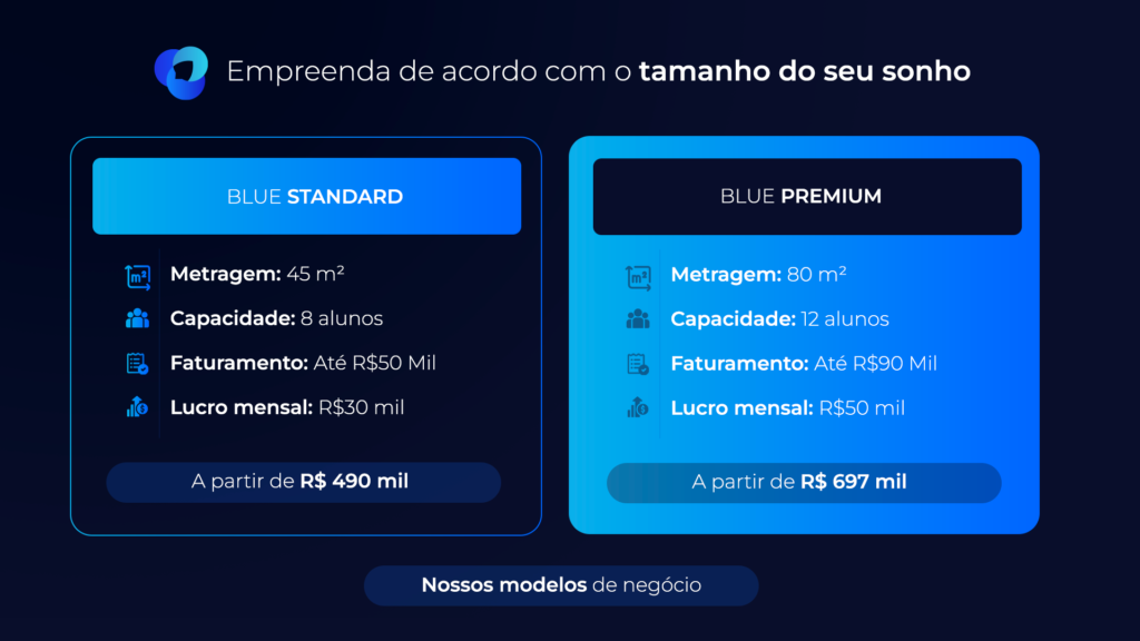 Com o modelo Blue Trading, o retorno do capital investido pode ocorrer entre 15 e 24 meses, graças ao suporte completo e às turmas inaugurais custeadas pela franqueadora.